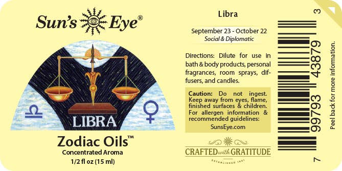 Libra Oil, with citrus top notes and a base note of Rose Geranium, is formulated to encourage the attributes of Libra: sociable, composed, and concerned with justice and balance.