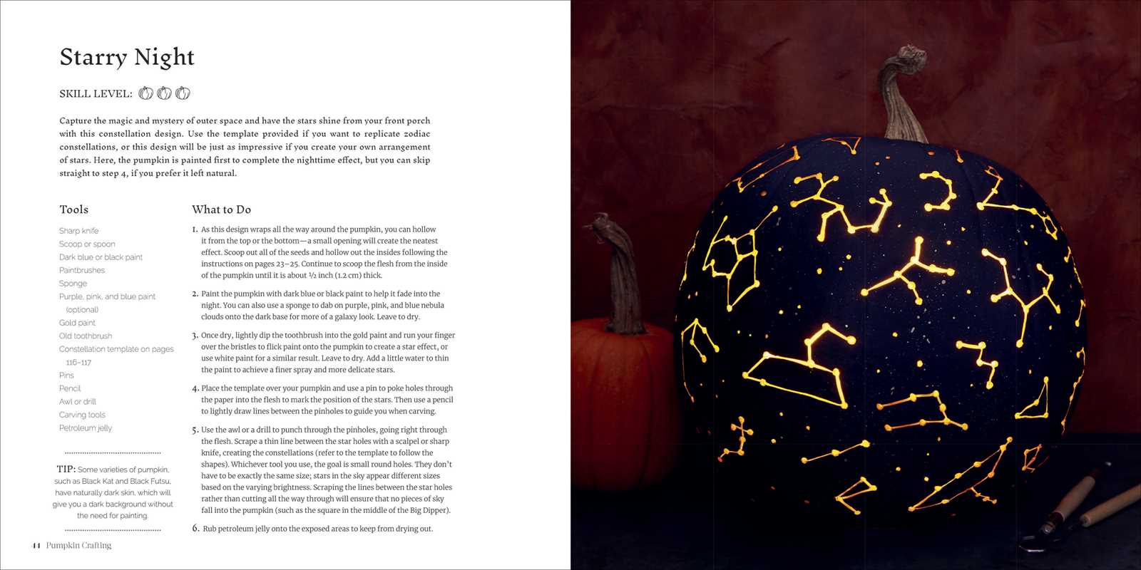 Spice up your porch, yard, and home with the lively, decorative pumpkins in Pumpkin Crafting! Included in this book are more than 100 ideas for carving, painting, and dressing up your pumpkins, from imaginative carving templates to intricate painting designs and colorful accessories. Create topsy-turvy ghosts, a glowing cobweb, tea light holders, a fairy house, and more...all out of pumpkins! Carving and decorating pumpkins is a fun tradition that families have long enjoyed together every autumn—from Halloween to Thanksgiving and beyond. In addition to the decorating projects, this book contains a variety of pumpkin recipes so that you can get the best use of your pumpkins all season long.