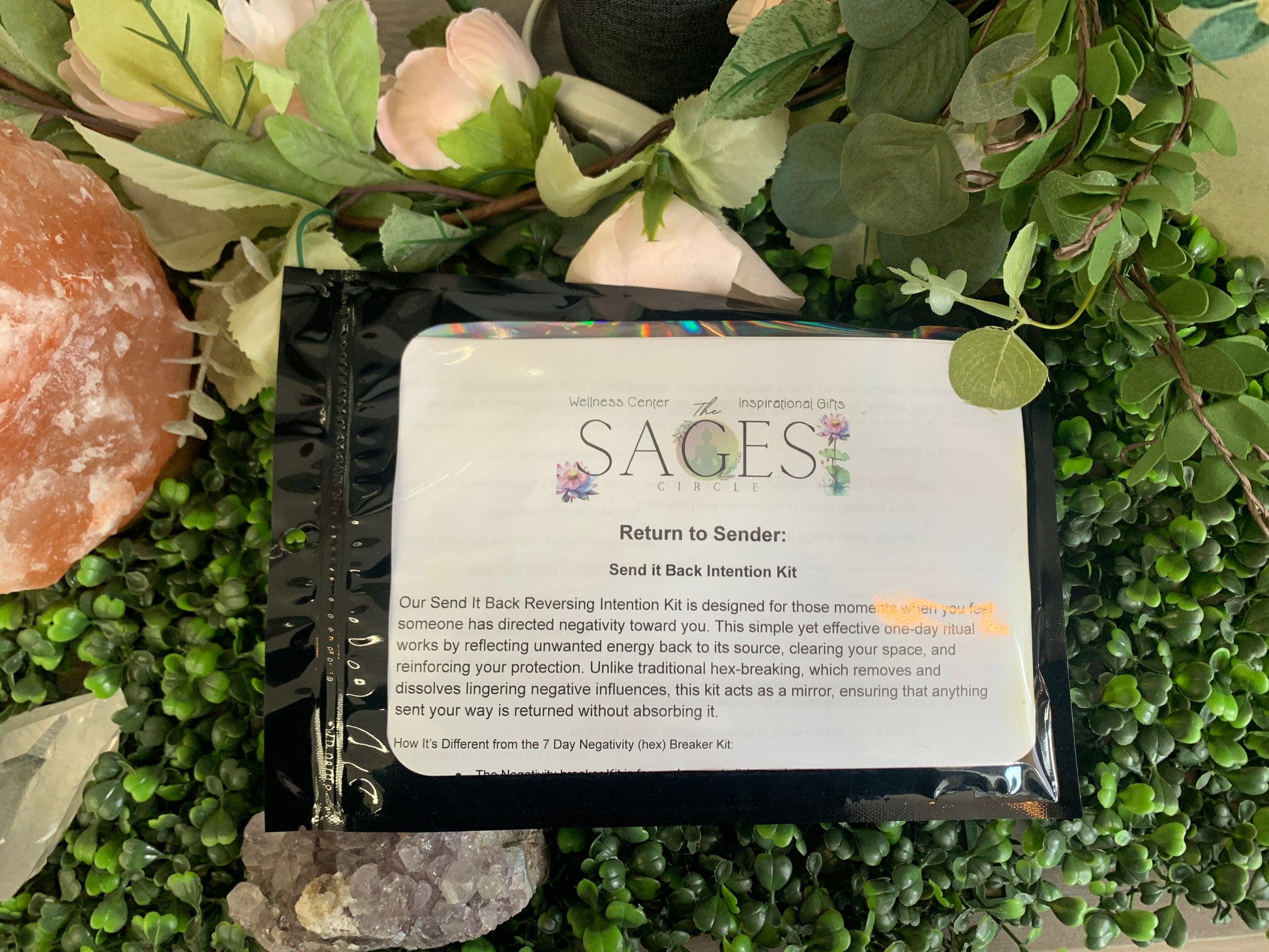 Our Send it Back Reversing Intention Kit is designed for those moments when you feel like someone has directed negativity toward you. This simple yet effective one-day ritual works by reflecting unwanted energy back to its source, clearing your space, and reinforcing your protection. Unlike traditional hex-breaking, which removes and dissolves lingering negative influences, this kit acts as a mirror, ensuring that anything sent your way is returned without absorbing it.